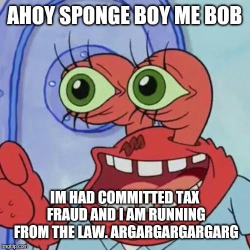 In the late 2010s the phrase saw use in shitpost image macros in which Krabs says Spongeboy Me Bob.