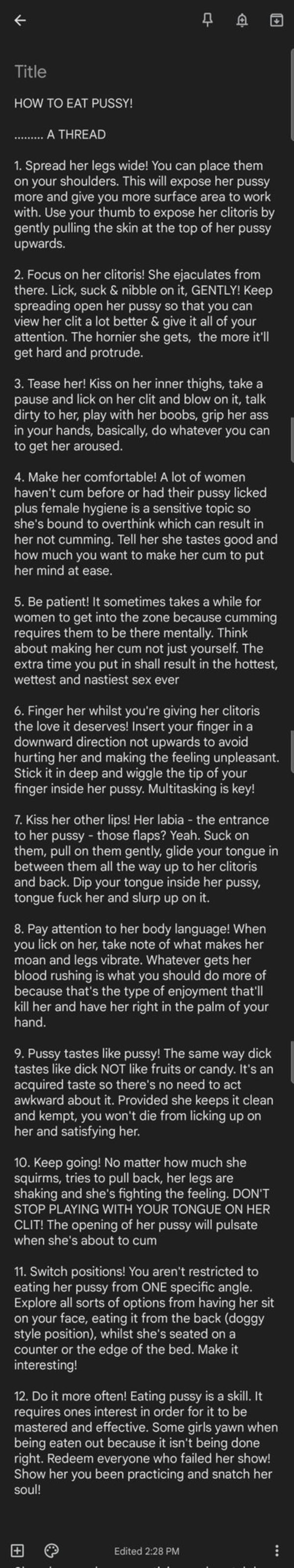 What do you do when a guys eats you out. Generally when she is sick or really tired. The very first thing youve got to be aware of regarding how to eat a girl out is the fact that foreplay is crucial.